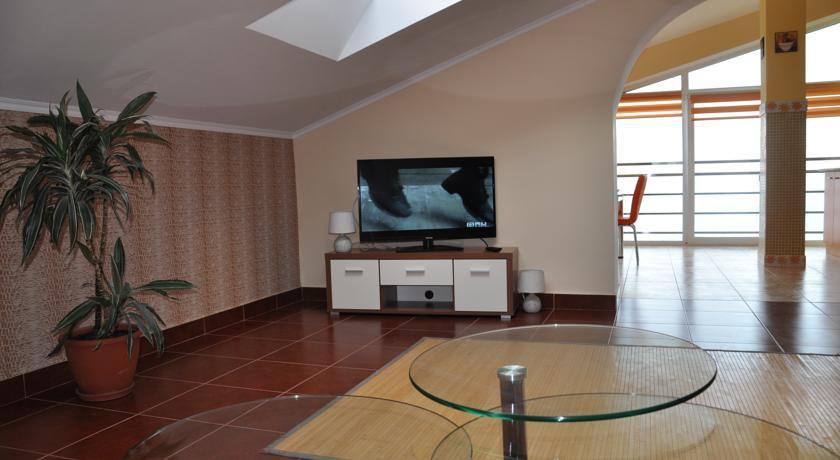 В номере: кондиционер, телевизор, холодильник, душевая кабинка, туалет, умывальник, электрочайник, современная мебель.